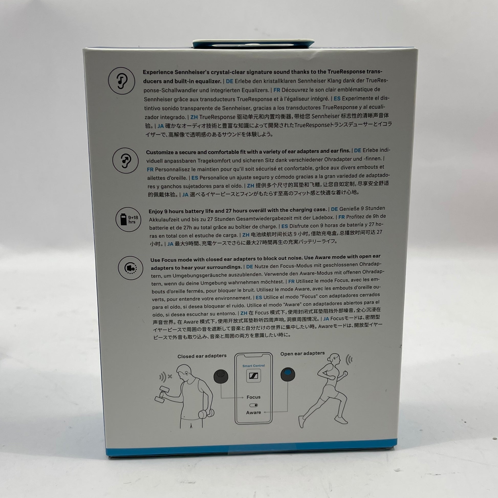 Features | Sennheiser Signature Sound, Adaptable Acoustics, Secure Customized Fit, Sweat & Splash Resistance |